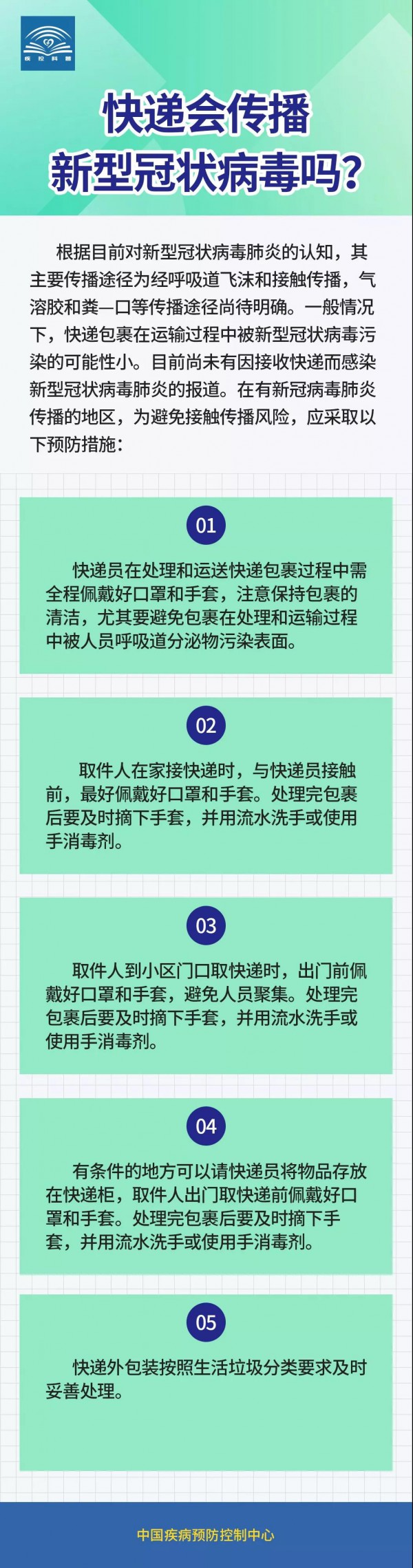 疫情之下,網(wǎng)上購物成為很多人獲取生活物資的首選方式,但也引發(fā)了一些擔憂,快遞會傳播新型冠狀病毒嗎?我們該如何更好地保護自己?中國疾控中心提示,快遞包裹在運輸過程中被新型冠狀病毒污染...