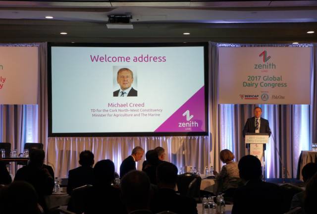 圖:愛爾蘭農(nóng)業(yè)、食品和海事部部長(zhǎng)MichaelCreed出席大會(huì)并致辭 乳業(yè)4.0時(shí)代,“品質(zhì)”仍是核心競(jìng)爭(zhēng)力 經(jīng)歷了“喝到奶”...