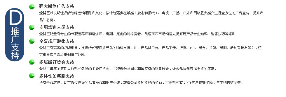愛嬰臣獨有的領先配方工藝,匯集多位著名兒科醫學專家及食品營養專家研究成果,參考聯合國糧農組織(FAO)/世界衛生組織(WHO)食品法典委員會(CAC)制定的推薦標準和中國配方奶粉食品安全國家標準,滿足中國寶寶成長發育特征和需求,品質出眾,給寶寶更全面,更安全的營養和成長關懷。 |