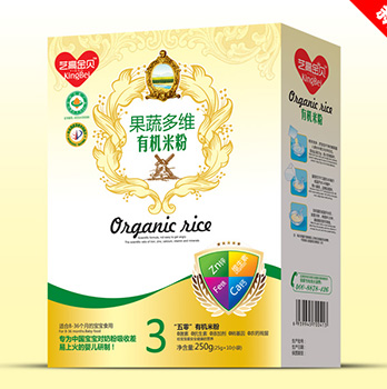 | 藝高金貝品牌理念: 藝高:技術好,工藝優,質量佳,品種強。 藝高金貝:藝高是金,寶寶最歡。 “藝高金貝” 廣來健康營養專家根據嬰幼兒寶寶生長發育快,胃腸道功能調整差等生理特點,專針對寶寶對奶粉吸收差,易上火的嬰兒研制!產品五零添加:0激素 、0抗生素、0添加劑、0轉基因、0農藥殘留;純天然、無污染、高營養的品質,是有機米粉中的“貴族”、“藝高金貝”將以一流的品質,搭好寶寶乳食過渡到飯食的“橋梁” |