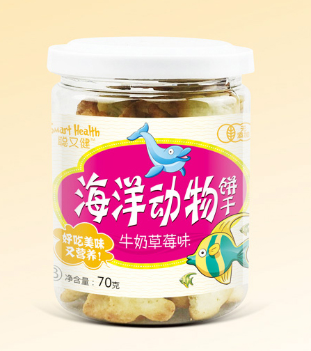 聰又健海洋動物的餅干設計成海洋動物的造型,看起來很好看很有趣,能引起寶寶的進食興趣,讓吃零食成為一種樂趣。同時動物造型的餅干還能鍛煉寶寶對各類動物的認知能力,開發寶寶的智力。