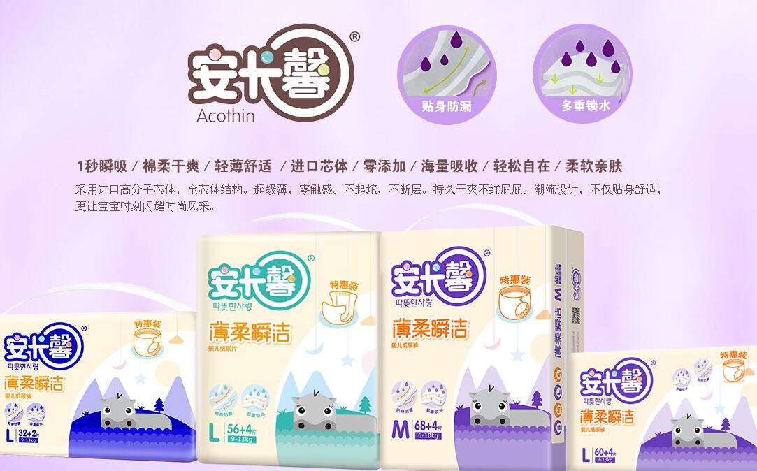 2018年初,在行業風向未明之時,安卡馨便已籌備品牌宣傳,向嚴謹、嚴審、國內最權威的媒體平臺——CCTV提高廣告申請,1月初經央視重重審查,從原料至生產,從產品從市場,最終雙方達成戰略合作,其品牌廣告在CCTV7、CCTV9兩大熱門頻道輪番播出,將安卡馨送至千家萬戶電視機“中”,品牌之路更上一步!影響力進一步擴大。 CCTV合作品牌,知名度高市場好做 安卡馨自創立便無比重視品牌建設,近年來,響應國家號召,打造自己的品牌,以品牌為樹標簽,以品牌來贏的市場,同時,戰略結盟各大主流媒體、社會公益等權威機構。 2018年初,在行業風向未明之時,安卡馨便已籌備品牌宣傳,向嚴謹、嚴審、國內最權威的媒體平臺——CCTV提高廣告申請,1月初經央視重重審查,從原料至生產,從產品從市場,最終雙方達成戰略合作,其品牌廣告在CCTV7、CCTV9兩大熱門頻道輪番播出,將安卡馨送至千家萬戶電視機“中”,品牌之路更上一步!影響力進一步擴大。 ![]() 四大系列滿足多種需求,消費者舒心經銷者放心 卓越品質是安卡馨發展的生命之源,卓越產品品質是經銷商的“經銷之泉”!在品牌建設同期,安卡馨不忘產品創新,成立專研中心,以個性化差異化的鉑愛臻芯、薄柔瞬潔、超級薄、及電商專供紙尿褲四大系列引消費者,滿足各方需求,更遠銷國內外,收獲諸多認可。且有高利潤、能走量也令經銷商無比放心。 安卡馨鉑愛臻芯紙尿褲 ![]()