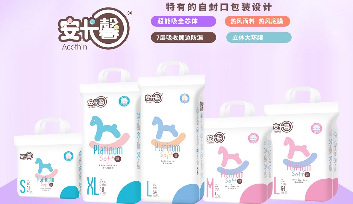 安卡馨鉑愛馨柔紙尿褲產品特點&優勢: 一,雙熱風底膜及面料——超柔; 二,全進口住友&三大雅高分子——超吸水;