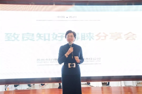 中午,優(yōu)秀客戶陸續(xù)應(yīng)邀來(lái)到鎮(zhèn)江會(huì)場(chǎng)。下午1點(diǎn)30分,會(huì)議正式開(kāi)始,由湯董事長(zhǎng)發(fā)表會(huì)議主旨演講,并宣布她給參會(huì)的優(yōu)秀客戶帶來(lái)了兩個(gè)方面的福利:一是感恩回饋活動(dòng);二是致良知致幸福。