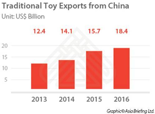 2016年,中國玩具業(yè)增長強勁,與中國近期輕工業(yè)的發(fā)展趨勢相反。2016年中國出口總額下降了7.7%,進口總額下降了5.5%。而玩具出口增長了9.5%,進口增長了23%。 雖然印度和越南較低的生產(chǎn)成本吸引了很多投資者,但由于中國的玩具制造工藝良好,且玩具消費市場的蓬勃發(fā)展,中國的玩具市場前景大好。鑒于中國玩具行業(yè)的成熟度,外國投資者要進入中國市場,與成熟的企業(yè)進行競爭,必須制定一定的戰(zhàn)略計劃。 中國玩具市場概述 中國是世界上最大的玩具制造商,全球70%的玩具供應都來自中國。2016年中國玩具出口總額達337億美元,其中玩具娃娃、拼圖玩具、教育玩具等傳統(tǒng)玩具的總價值達184億美元。中國大部分的玩具出口是來自國外品牌的OEM(代加工)訂單。