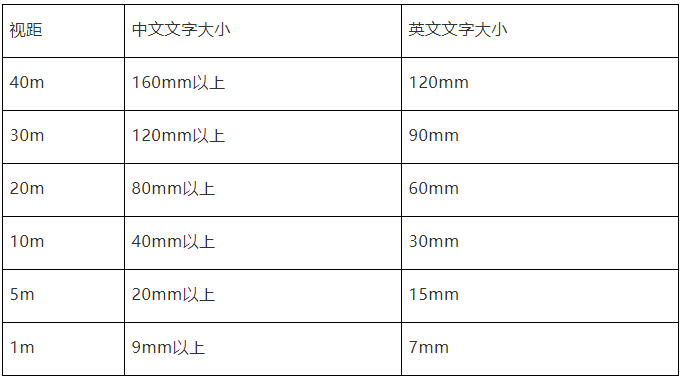 目前, 在高新技術廣泛應用指示系統設計的背景下, 如何使指示系統設計不再象多數城市千城一面而更個性化、有差異性的展現給使用者, 是現代視覺傳達設計中的一個重要課題。 1、符合人體工程學 具體尺寸、點位布置符合公共場所內行人使用、查找、觀看的舒適與方便。視距與文字大小的比例可參照下圖: