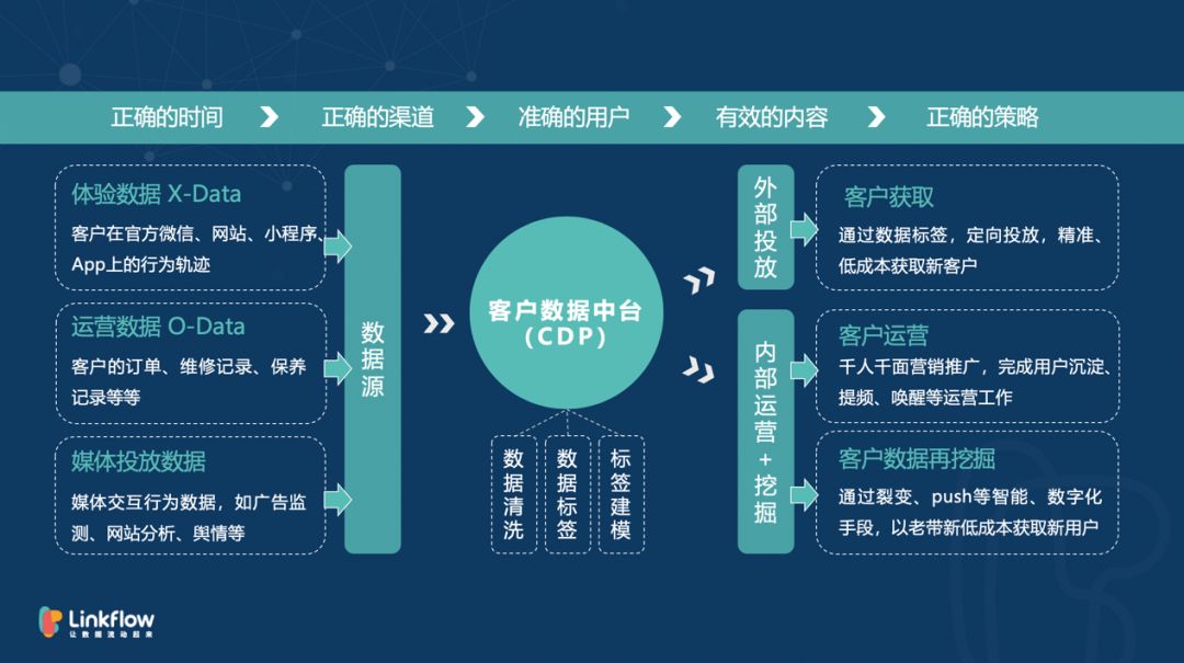 CDP的三大能力: 數據能收進來(Link):CDP可以快速連接來自市場、銷售、客服等各部門的各類數據源中存儲的客戶數據。為企業提供了完整的、不斷更新的客戶畫像,而不是流于表面的統計數據。 數據能流出去(Flow):CDP有能力快速對接企業內外部的各種數據源,包括廣告投放、CRM、客服系統、網站、微信、App、大數據分析與BI等等。只有數據流動起來,才能更好地構建數據驅動的企業文化。 業務驅動:CDP是為業務人員驅動建立的,而不是IT人員。業務人員可以自行決定需要什么數據源、如何對用戶打標簽、把數據傳遞到哪些平臺等等。業務團隊可以直接在CDP上進行操作,而不用依賴于IT部門。這賦予企業快速響應前端需求的能力。 后流量時代,企業千方百計獲取客戶的日子已經過去,很慶幸客戶數據中臺(CDP)作為這個時代的高新產物,賦予營銷官們深度服務客戶的能力,幫助企業破局增長瓶頸。 |