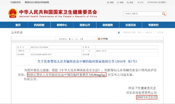 | 新政|兩部委聯合發布規定嬰幼兒谷類輔食鎘含量制定臨時限量值 |