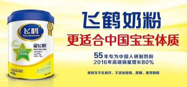2003年5月,飛鶴國際在美國納斯達克成功上市,成為第一家在美國上市的中國乳品企業。2013年6月,飛鶴正式宣布完成私有化進程。當時有專家分析稱,“私有化之后,飛鶴不再為股價和財務數據所累,可制定利于公司長遠利益的發展戰略。”果不其然,僅僅三年后,2016年飛鶴以穩健的姿態、火箭般的速度,躍居國產奶粉第一。 2016年,飛鶴整體銷售額達到68億元,同比增長8%;其中,高端奶粉業務同比增長80%。