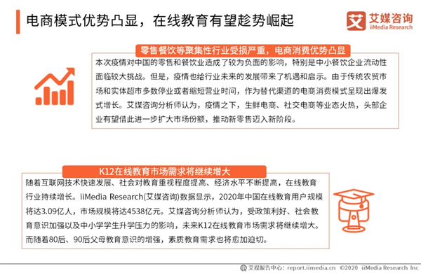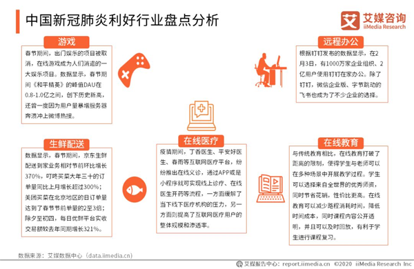 以上內容節選自艾媒研究院發布的《2020中國新冠肺炎疫情正/負影響行業及典型企業業績影響分析報告》