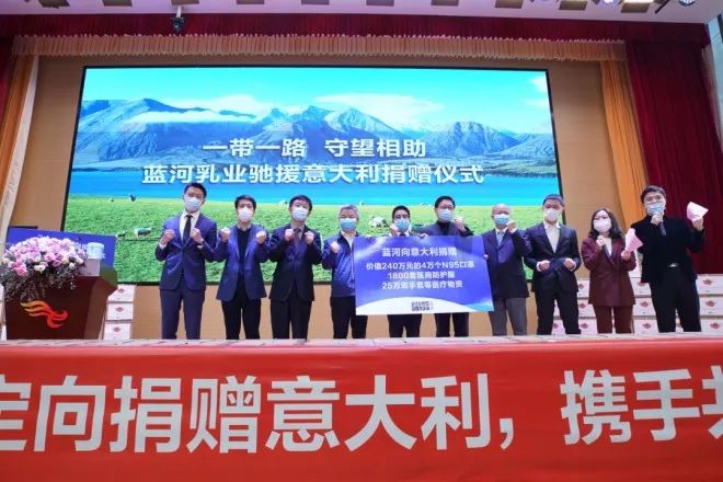 國內外疫情形勢“倒掛”,是所有人都始料未及的。前不久,歐洲疫情重災區意大利發出緊急求救,但不幸的是,歐盟國家都自顧不暇,無一國響應,只有中國作出了雙邊回應,在中方自身對醫療物資還有較大需求的情況下,全力以赴克服困難,向意方提供援助。 3月12日,中國首批抗疫援外專家組9名醫療專家,攜帶大批醫療物資馳援意大利——這支出征海外的救援隊,正是來自08年汶川大地震時被意大利幫助過的四川! 知恩圖報,大國氣概。 為了響應國家號召,民間力量也在第一時間行動起來。上市藥企以嶺藥業,互聯網巨頭蘇寧、小米等企業紛紛加入援助隊伍,捐資捐物,其中,藍河乳業作為國內首批捐贈意大利的奶粉企業,頗為引人關注。 藍河馳援 3月14日,藍河捐贈的價值240萬元的醫療物資,包括4萬個N95口罩、1800套醫用防護服、25萬雙醫用手套等,正緊急空運至意大利撒丁島,這是湖南首家向意大利捐贈醫療物資的企業。