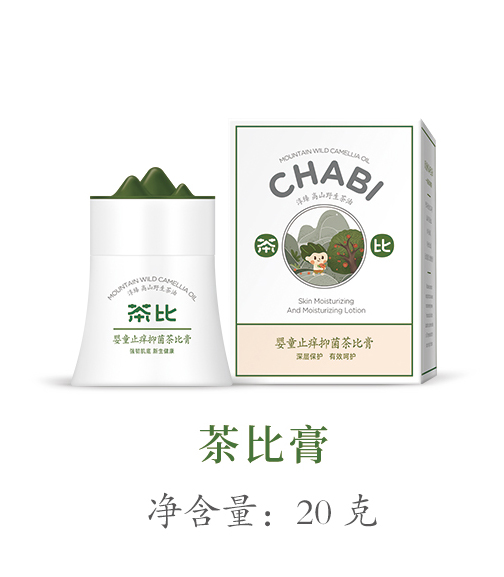 茶比護臀膏 功效:皮炎、濕疹、尿布疹、痱子、體癬、奶癬、過敏、紅屁股、蚊蟲叮咬、皮膚瘙癢。 賣點: 1.天然草本止癢配方,溫和無刺激,氣味清爽; 2.不含酒精、安全有效、快速止癢; 3.采用化妝品瓶裝,外觀設計簡約大方,內瓶瓶口加蓋內壓墊,起到防感染、防滲漏的作用; 4.外盒采用六維包裝技術。